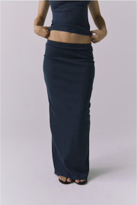 ALLURE RIB KNIT MAXI SKIRT - NAVY