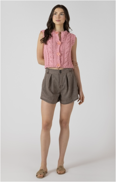 FLORAL BUTTON CABLE SWEATER VEST - CANDY PINK