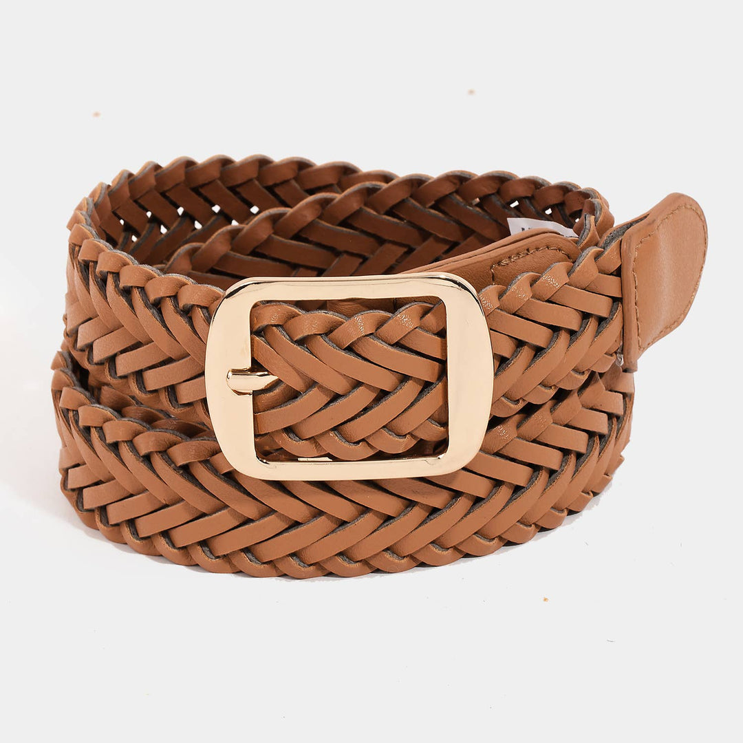 ROUND WOODEN BUCKLE BRAIDED BELT - KHAKI