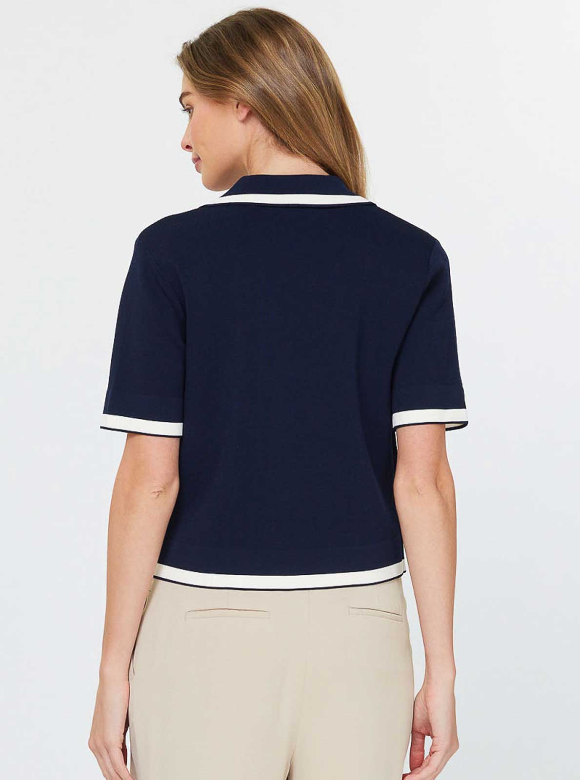 CONTRAST EDGE CROPPED SWEATER JACKET - NAVY